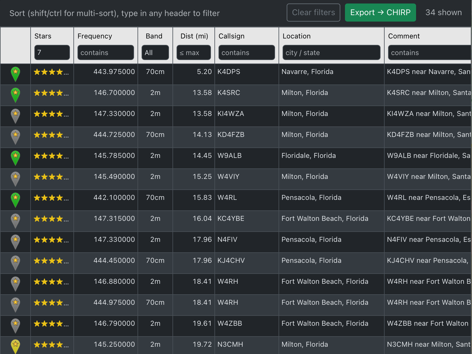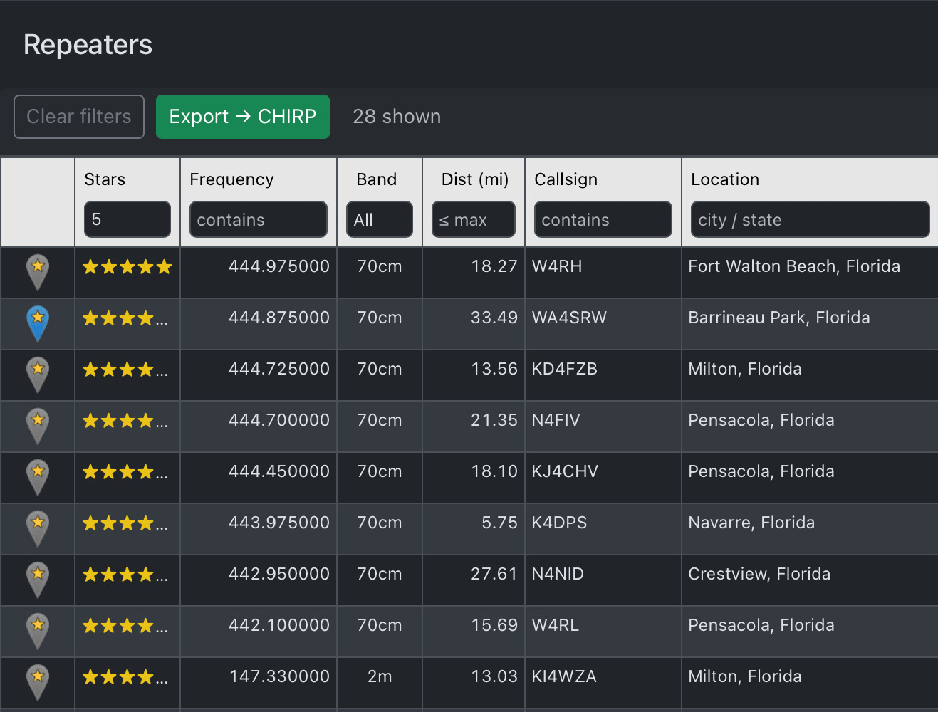 Program your radio in seconds — not minutes. Export filtered repeater lists directly to CHIRP, exactly the way your radio expects them.